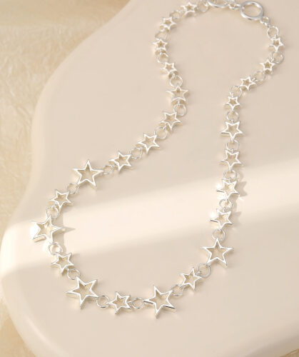 Silver plated chain necklace with multiple silver bead drops.
