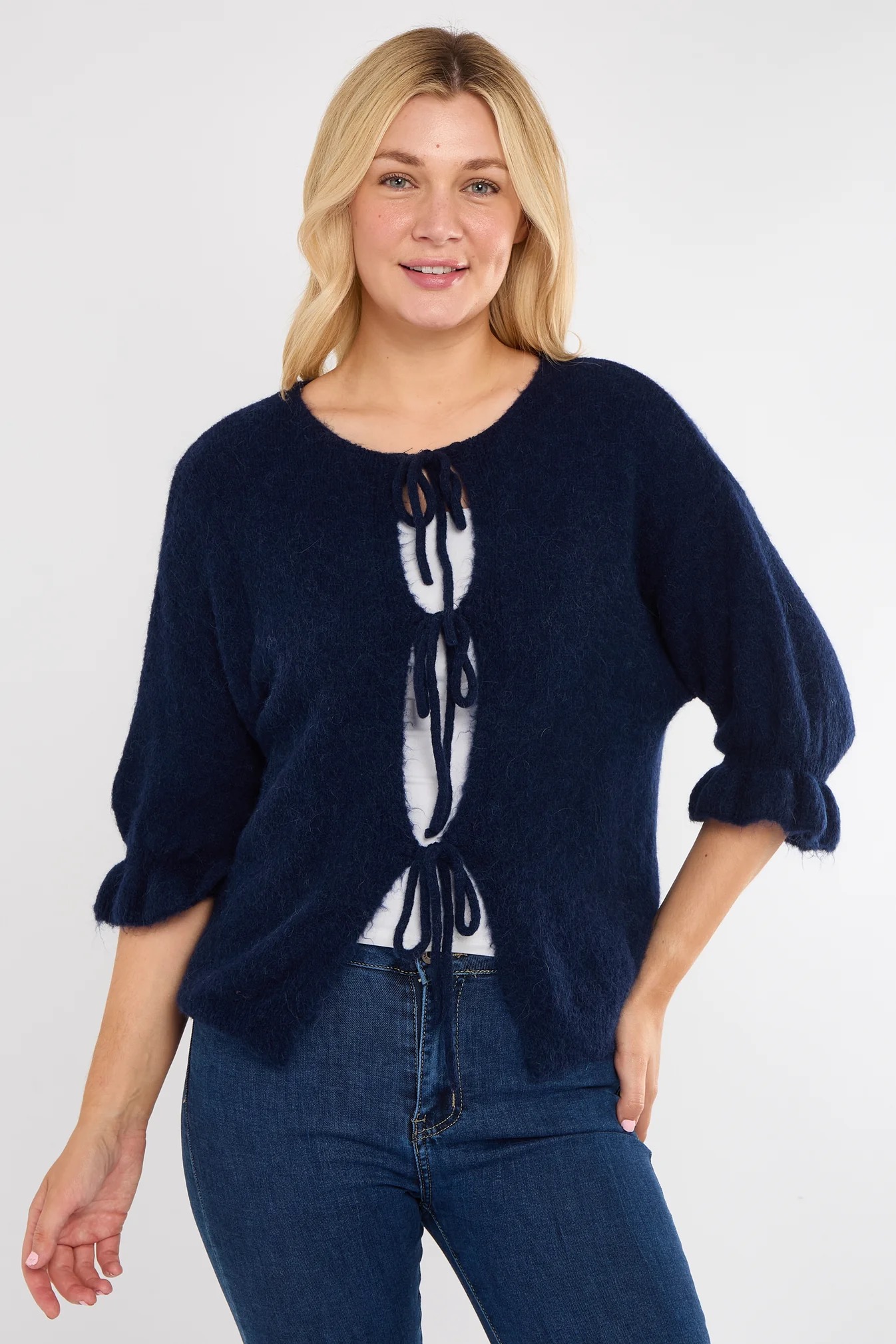 The alpaca front tie cardigan combines relaxed elegance with cozy warmth. This cardigan could easily be dressed up or down.