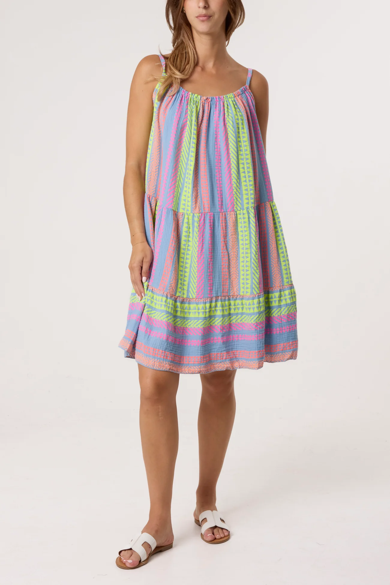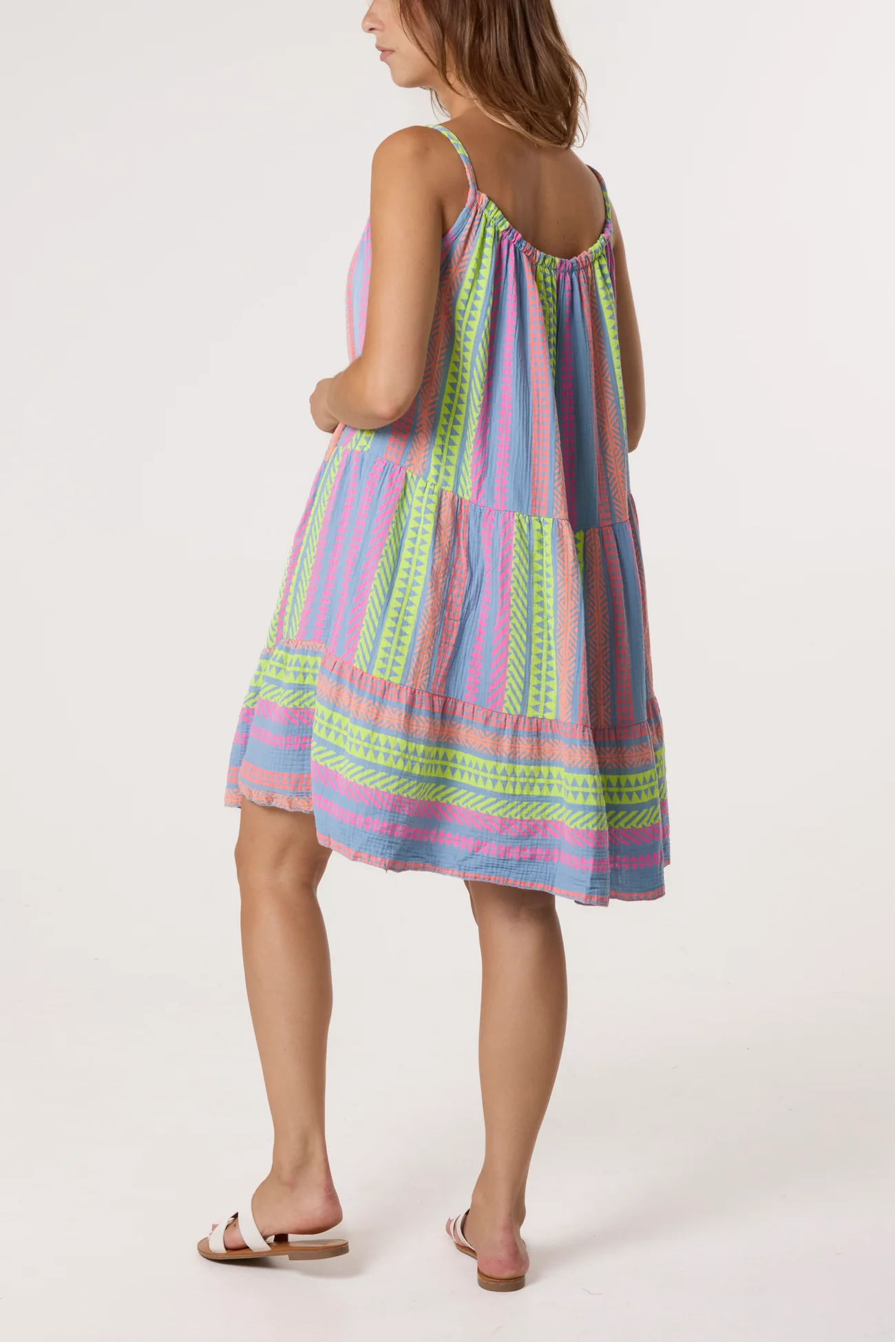 Make a statement with this bold and brightly coloured cheesecloth dress.