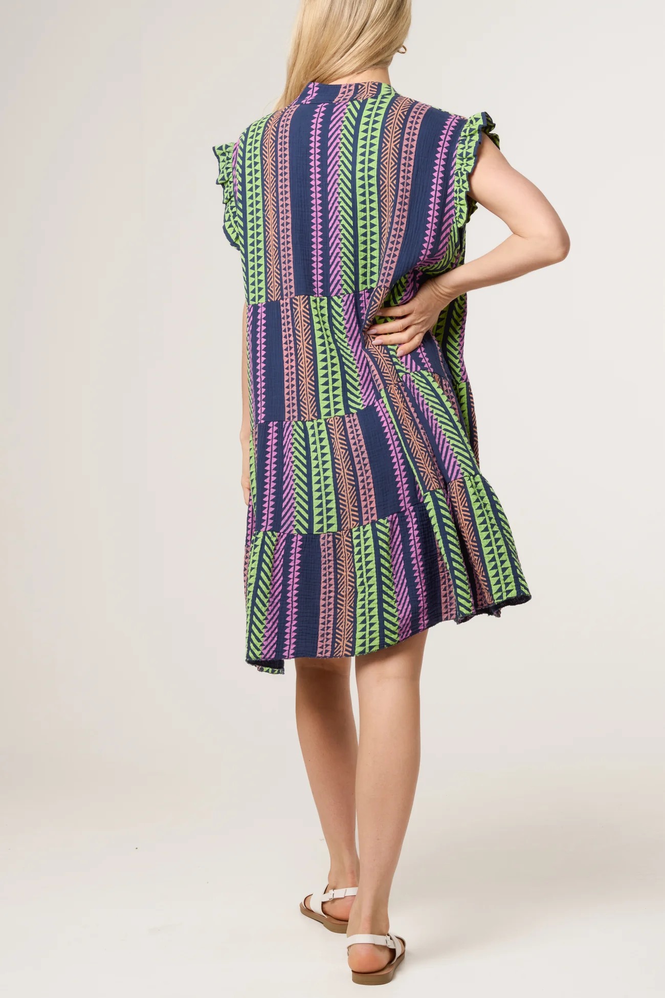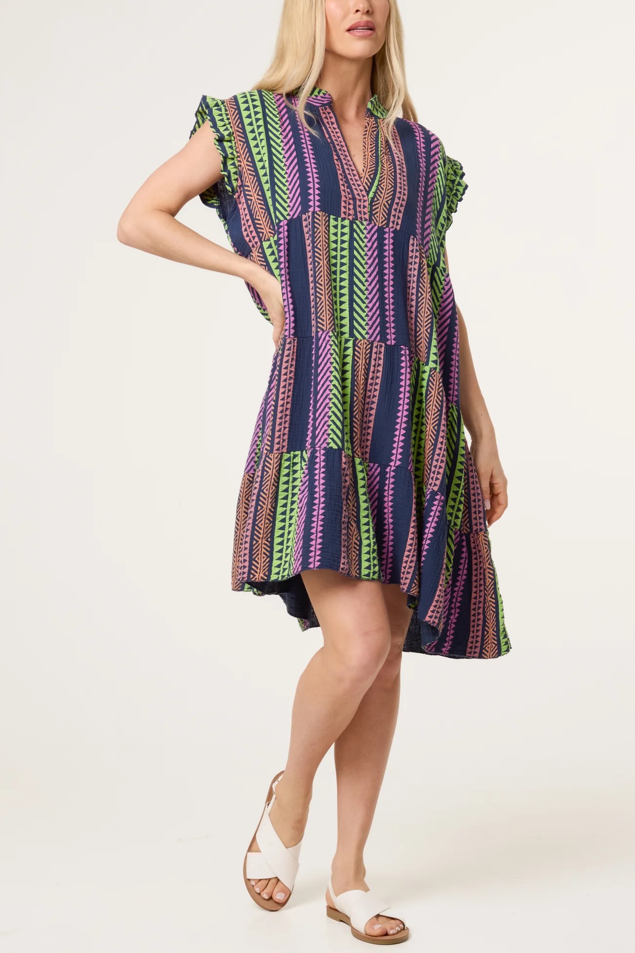 Featuring a frill sleeve and flattering v-neck. This dress is perfect for casual daytime dressing, even use as a cover up for the beach.