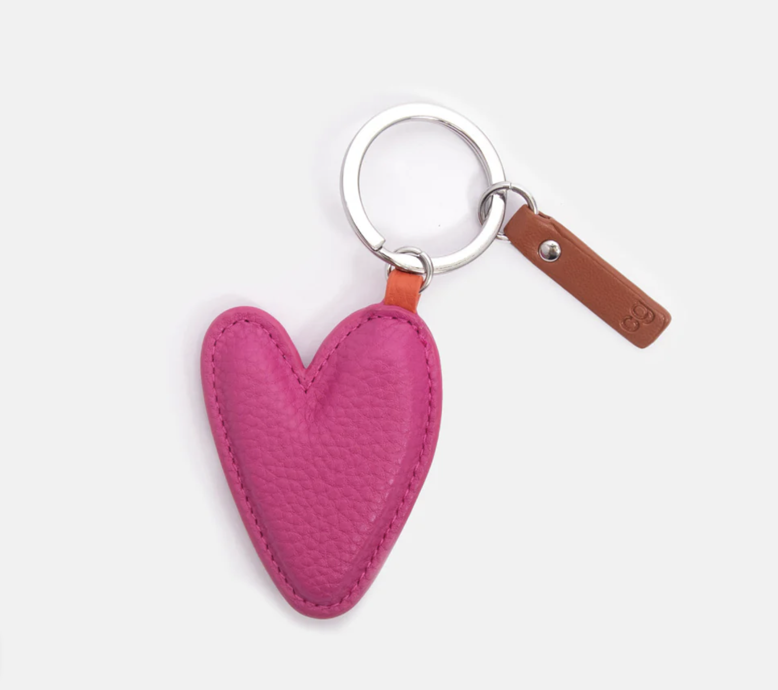 Very on trend, this beautiful bright fuchsia pink keyring is paired with a silver O-ring and faux leather tag.