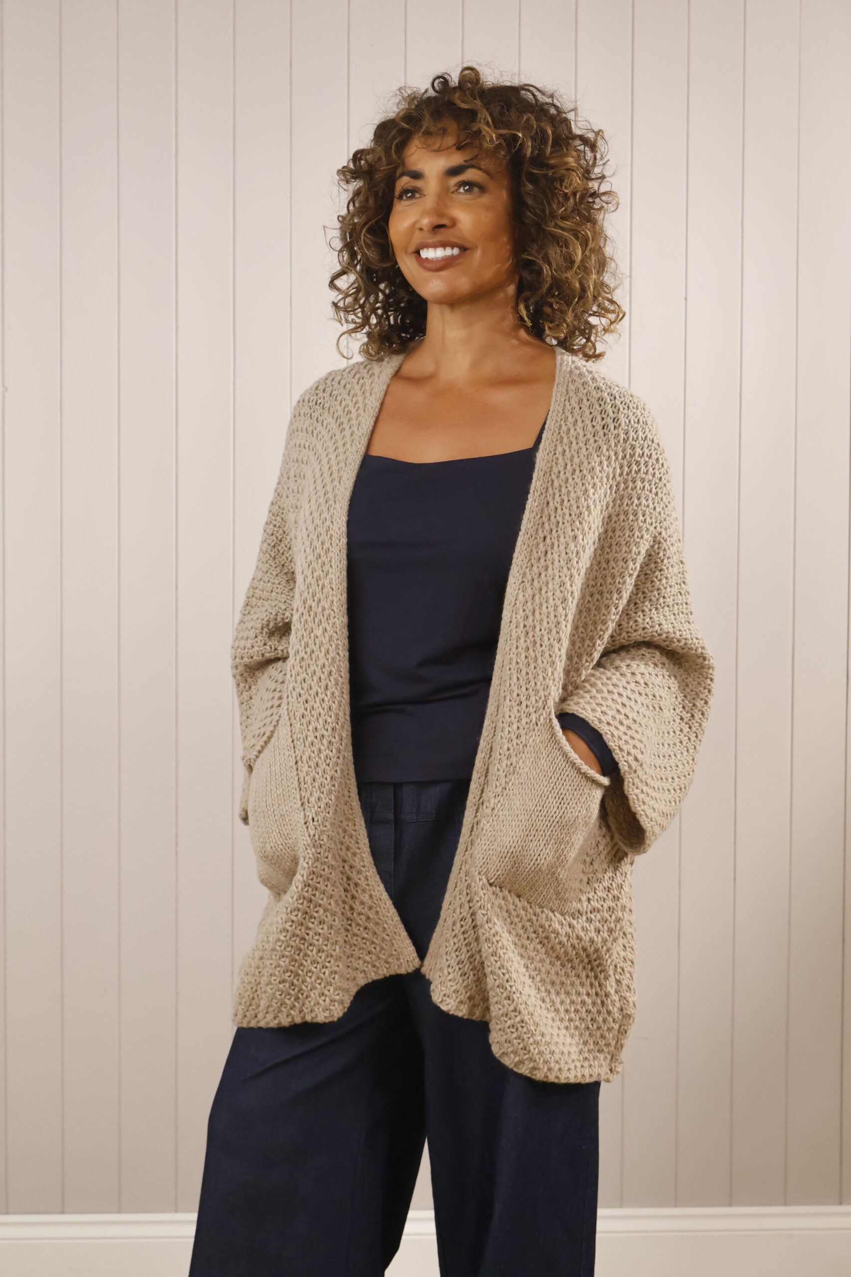 Be the first to review “Chunky Cable Knit Pocket Cardigan – Beige”