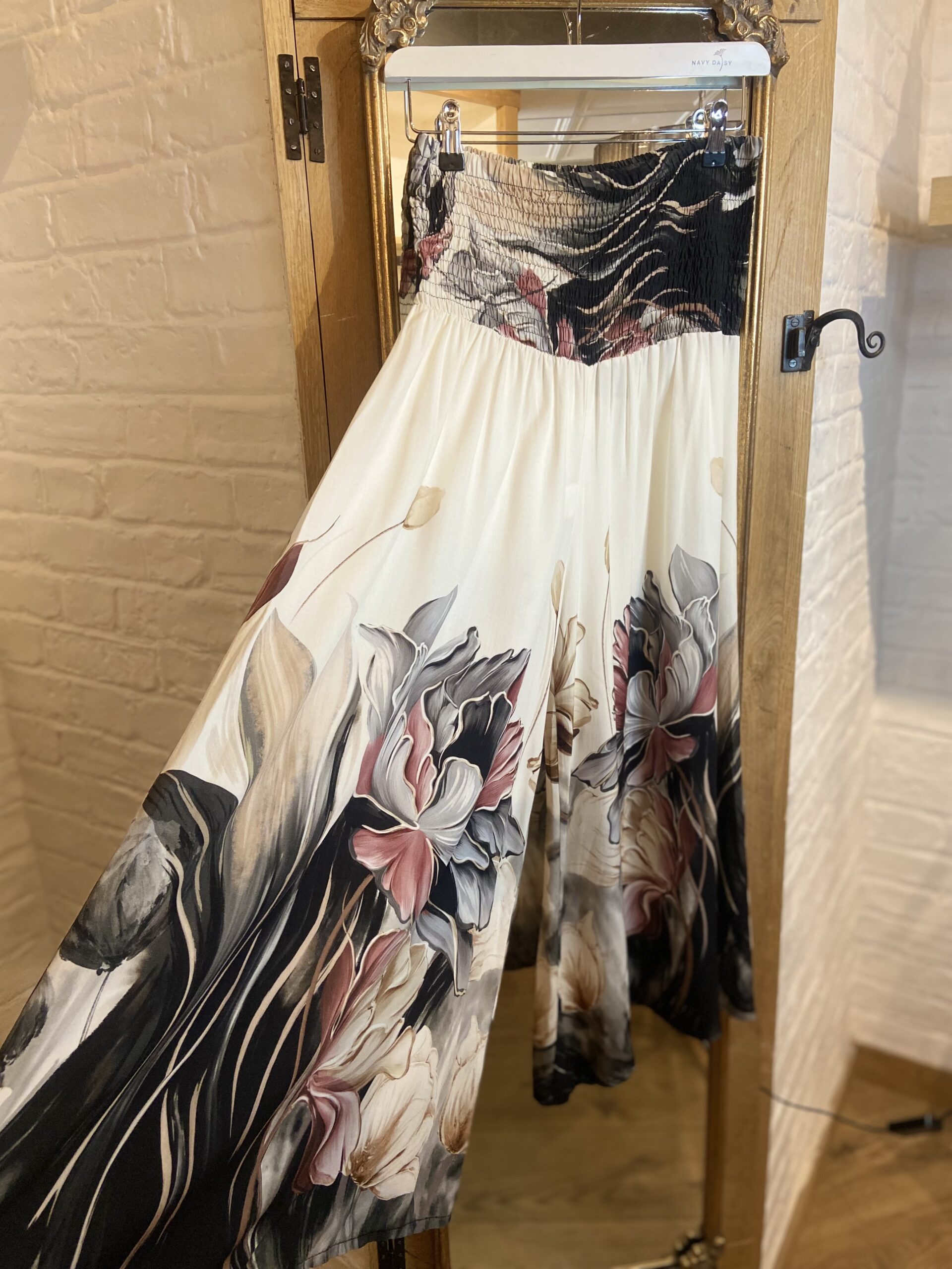 Embrace effortless comfort with our elasticated waist floral trousers. Designed with a relaxed silhouette and a flattering elasticated waistband. They are wide and give the impression of wearing a skirt.