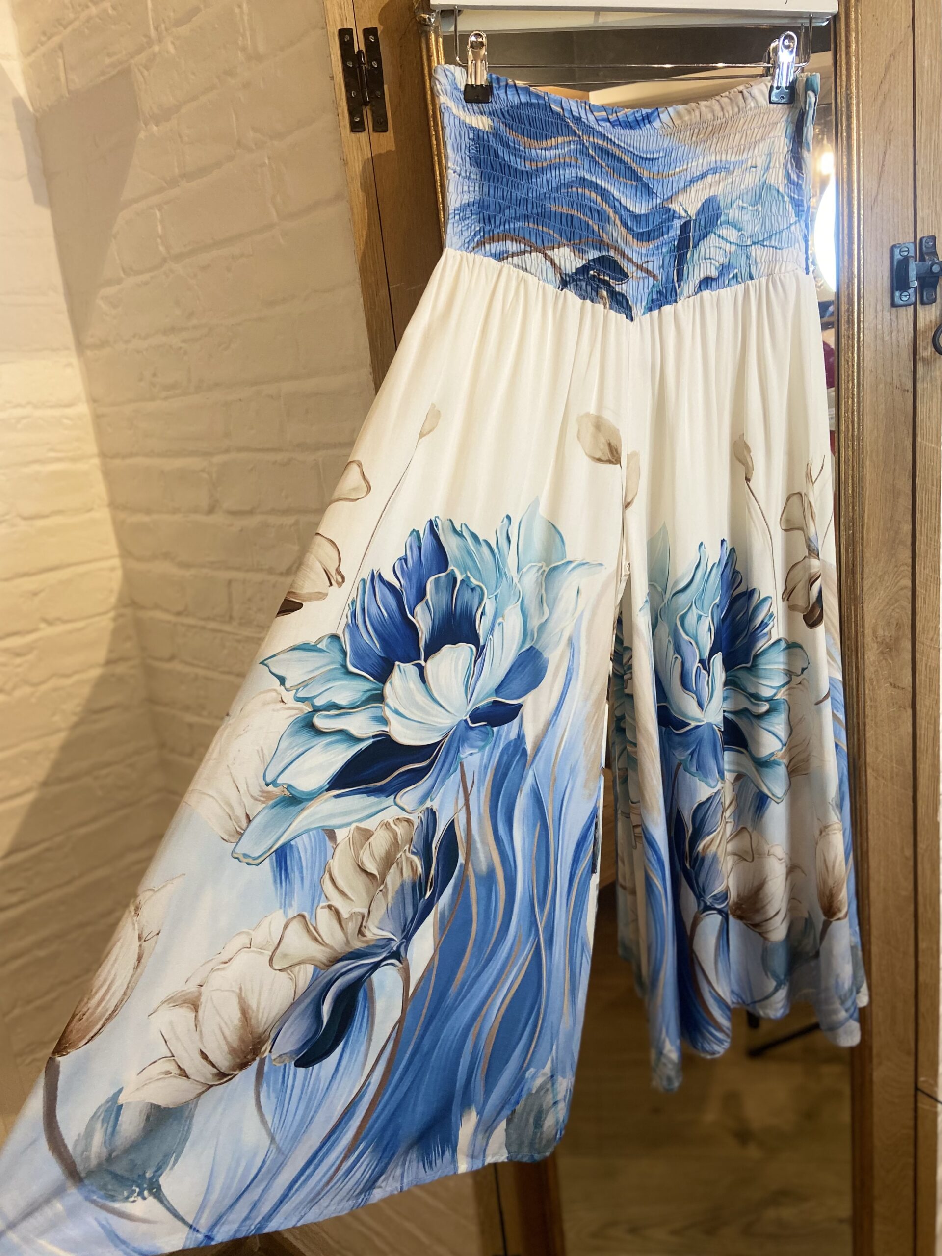 Embrace effortless comfort with our elasticated waist floral trousers. Designed with a relaxed silhouette and a flattering elasticated waistband. They are wide and give the impression of wearing a skirt.