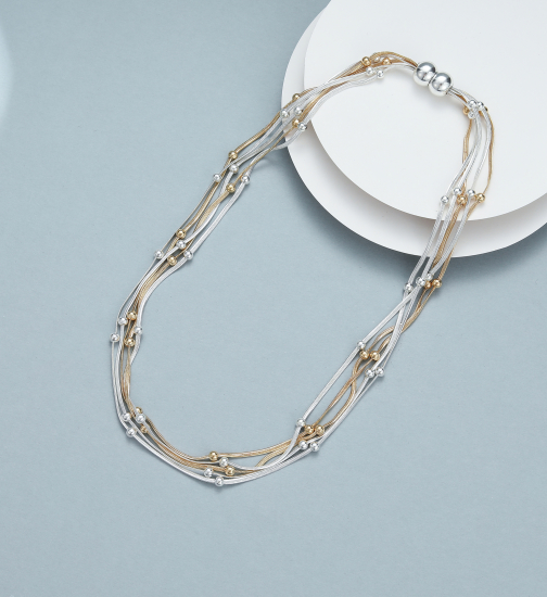 It is multi tonal so compliments many outfits. It looks great with a t-shirt or a black dress!