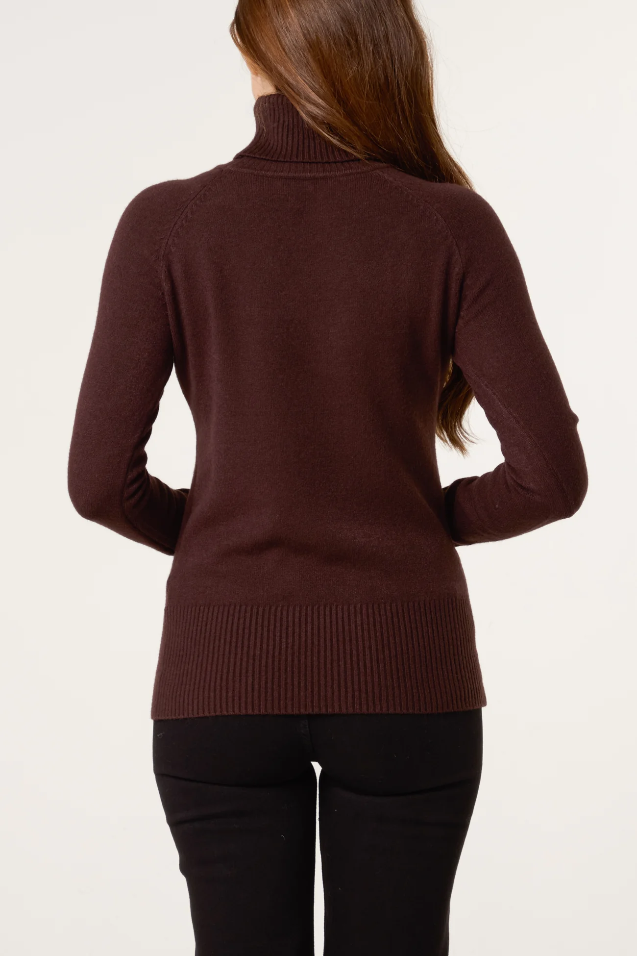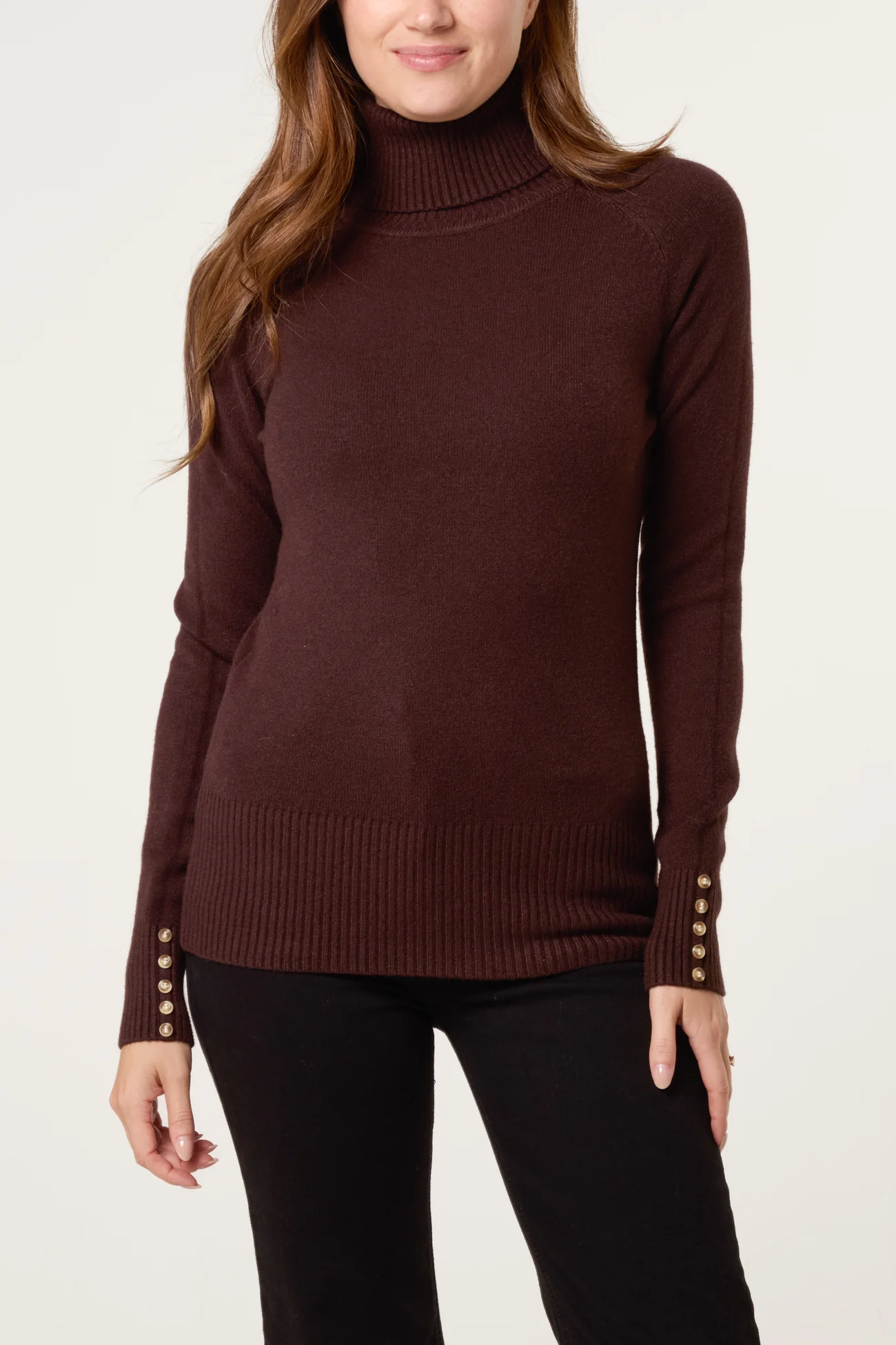 Be the first to review “Roll Neck Button Cuff Jumper – Brown”