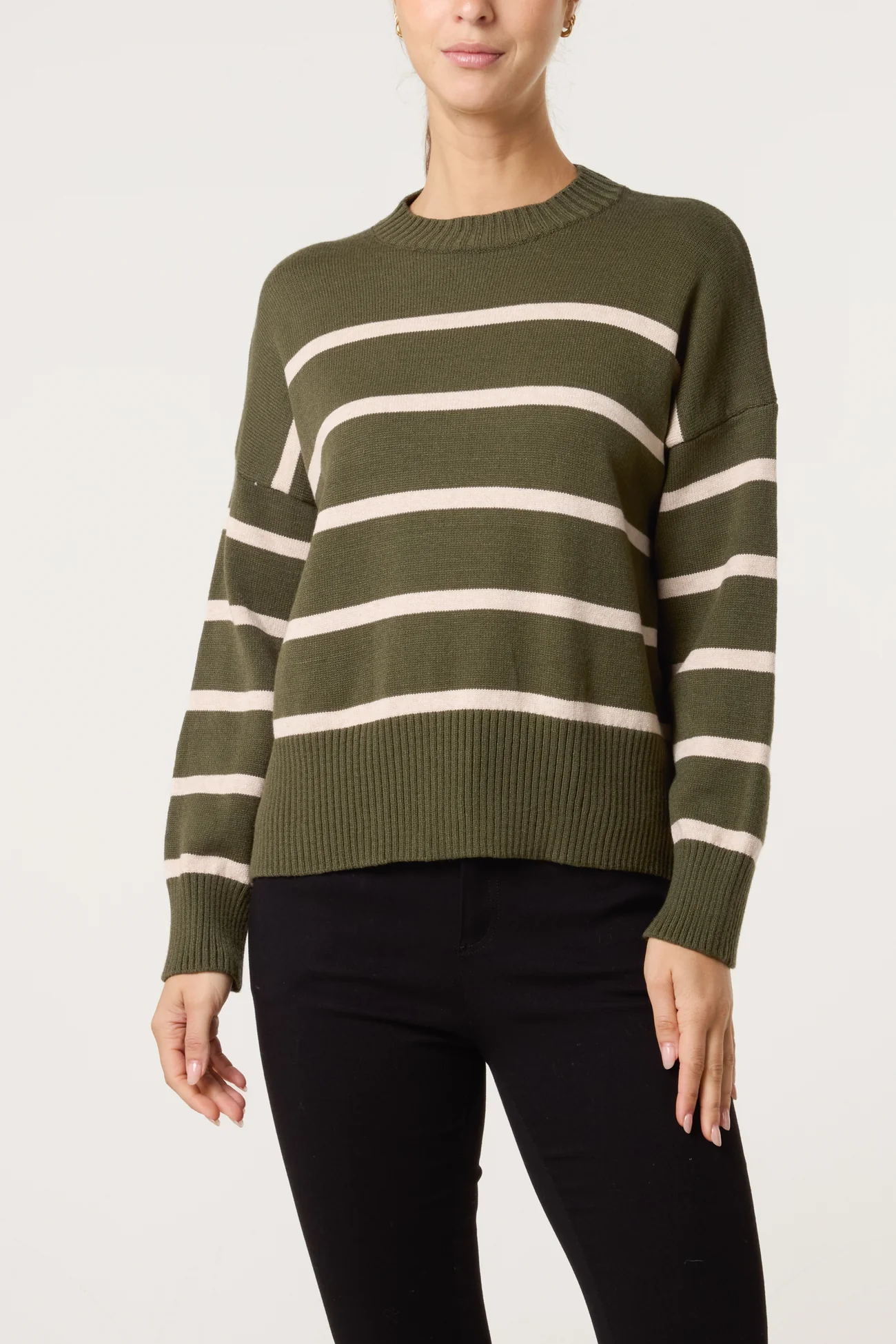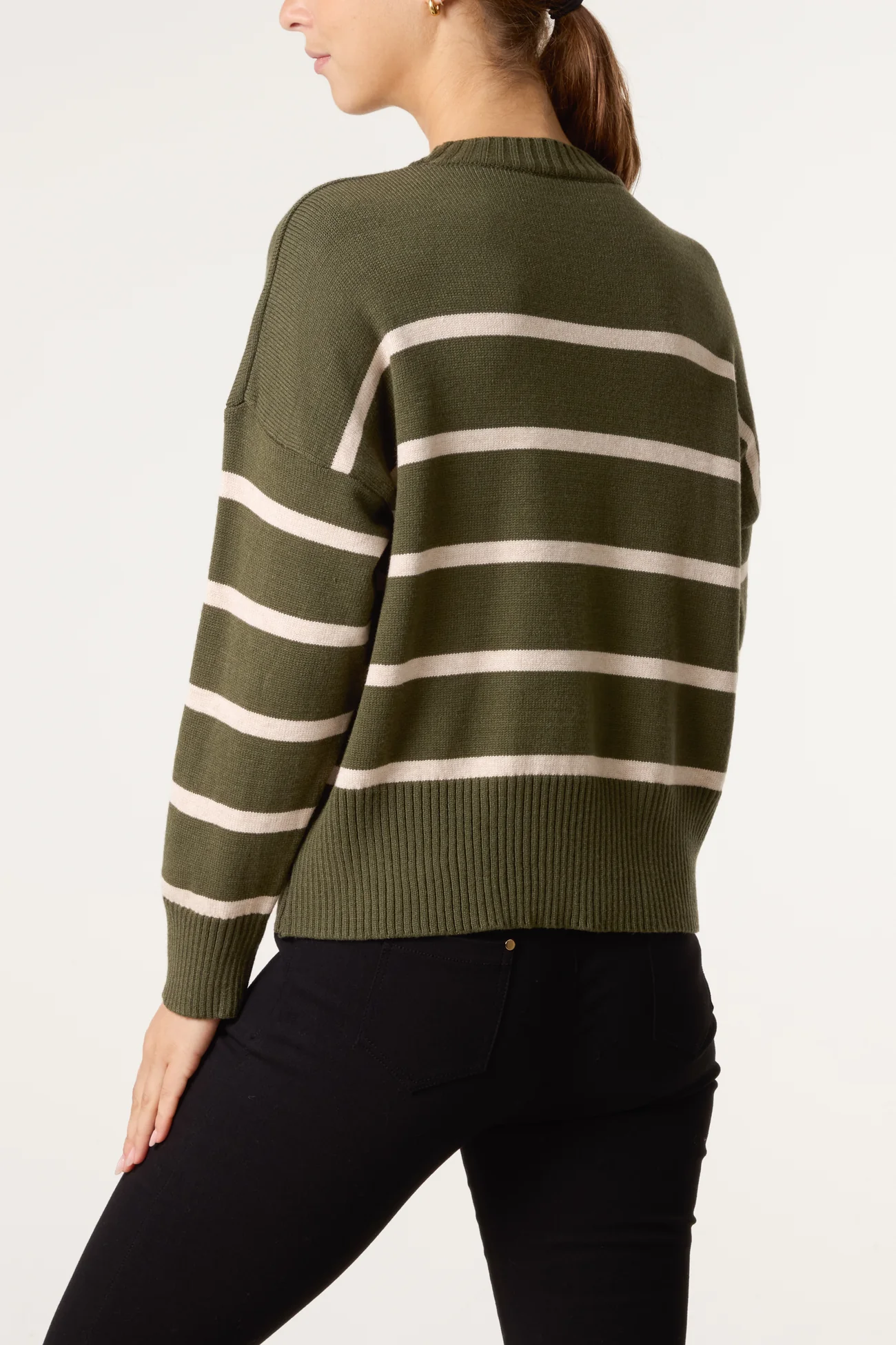 The ribbed detail around the neck gives the impression of a low turtle neck. The cuffs and bottom are also ribbed to give a little shape.