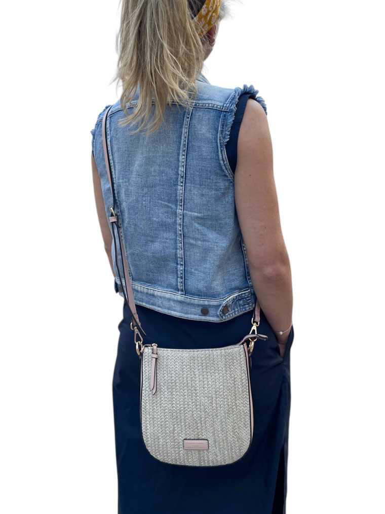 A soft structured bag designed with a natural straw finish and top zip closure. Finished with a long adjustable detachable strap, this enables you to change the strap to match an outfit.